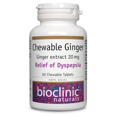 - Provides organically grown ginger extract in a naturally sweetened chewable tablet